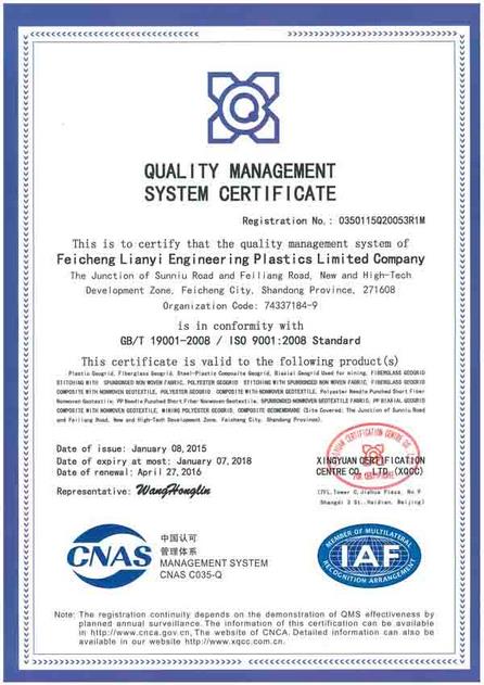 肥城聯(lián)誼工程塑料有限公司擁有德國KARLMAYER高速經(jīng)編機、MALIM0多軸向織機、道尼爾織機和兩條雙向格柵生產(chǎn)線,兩條單向格柵生產(chǎn)線,掌握了門澤爾公司的涂層技術。公司主要生產(chǎn)和經(jīng)營各類塑料土工格柵、玻纖土工格柵、三維土工網(wǎng)墊、土工網(wǎng)、土工格室、土工布、復合土工膜等工程材料。